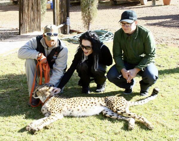 Fotos de Bill, Gustav e Tom visitando o Ibiza Safari Lodge. A foto é de agosto de 2009.